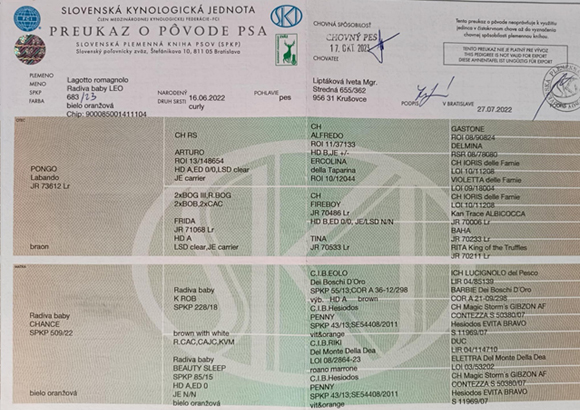 Oba psa prihajata iz uveljavljenih vzrejnih linij. Med njunimi predniki je med drugim tudi vrsta mednarodnih prvakov.