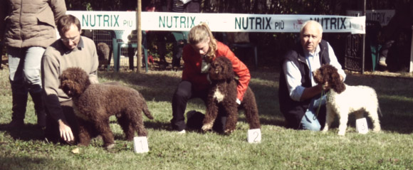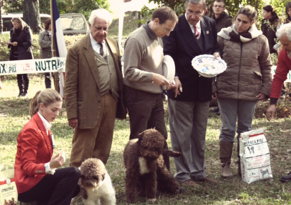 Podelitev nagrad. Bagnara Romagna 2009. Na fotografiji lastnik Aleš Gasparič z Jojem (Kan Trace Bazooka Joe), desno, oba sodnika: Dr. Giovanni Morsiani in Serena Bernardi.